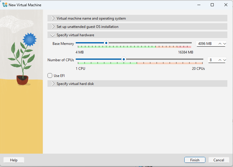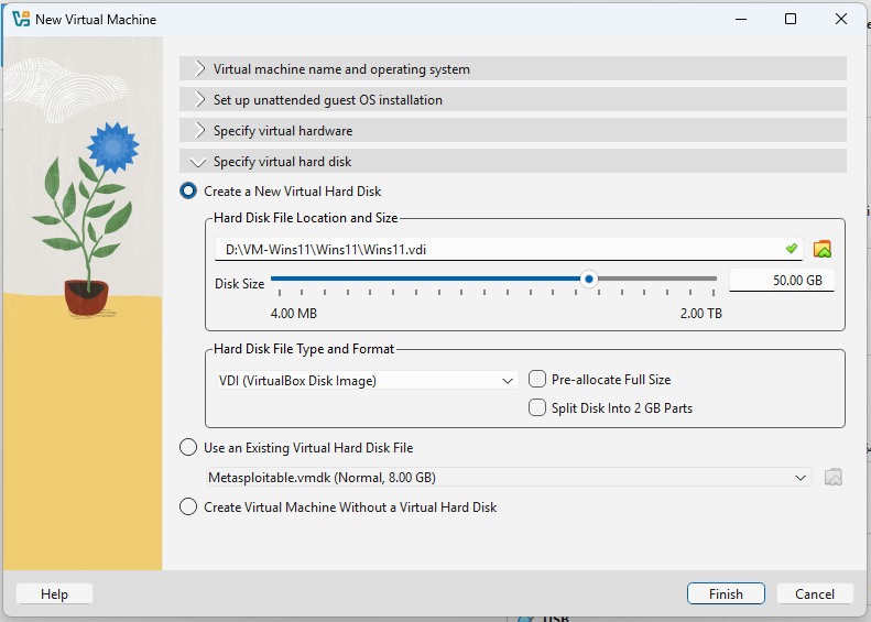 1. ให้ตั้งค่า virtualbox เพื่อติดตั้ง windows11 ดังรูป