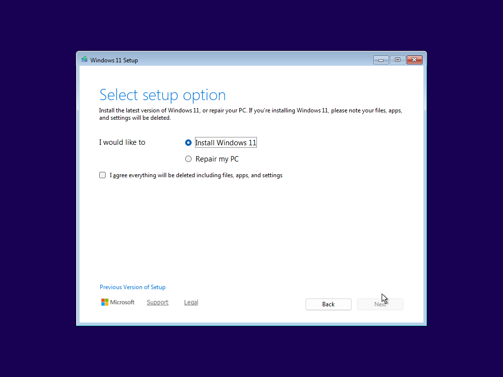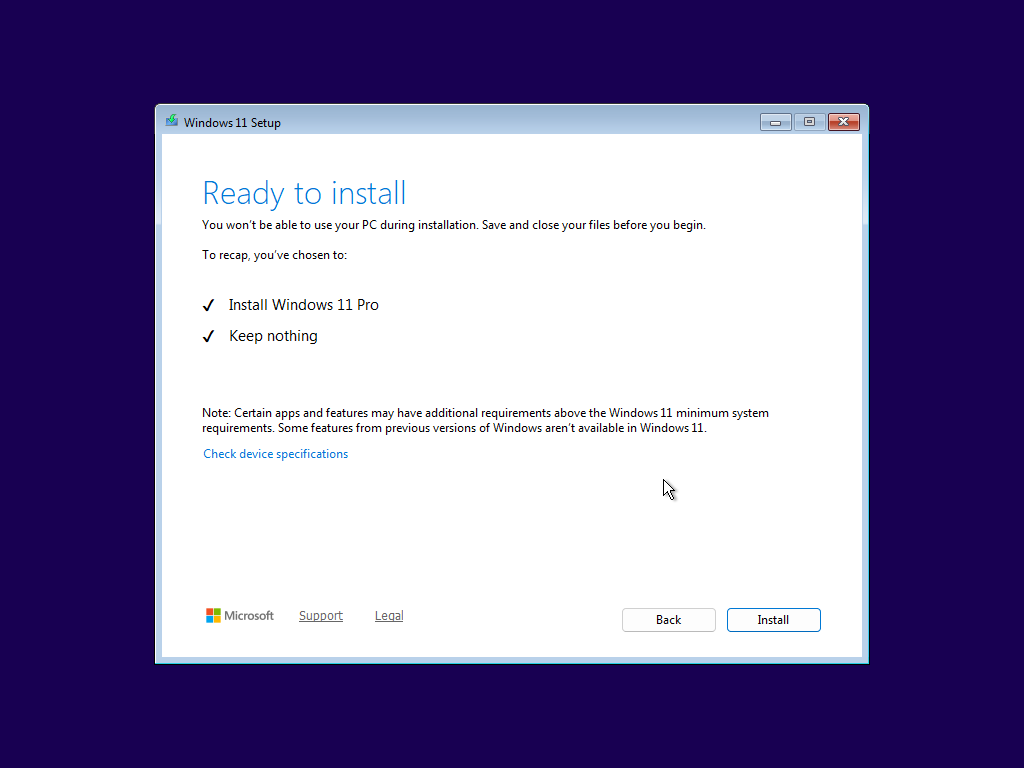 11.จากนั้นให้ย้อนกลับเพื่อให้ระบบตรวจสอบความต้องการเพื่อเริ่มติดตั้ง windows ใหม่อีกรอบ