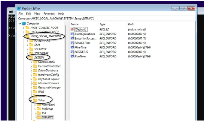 6.ให้ไปที่การตั้งค่า registry ดัง path ต่อไปนี้ HKEY_LOCAL_MACHINE\SYSTEM\Setup