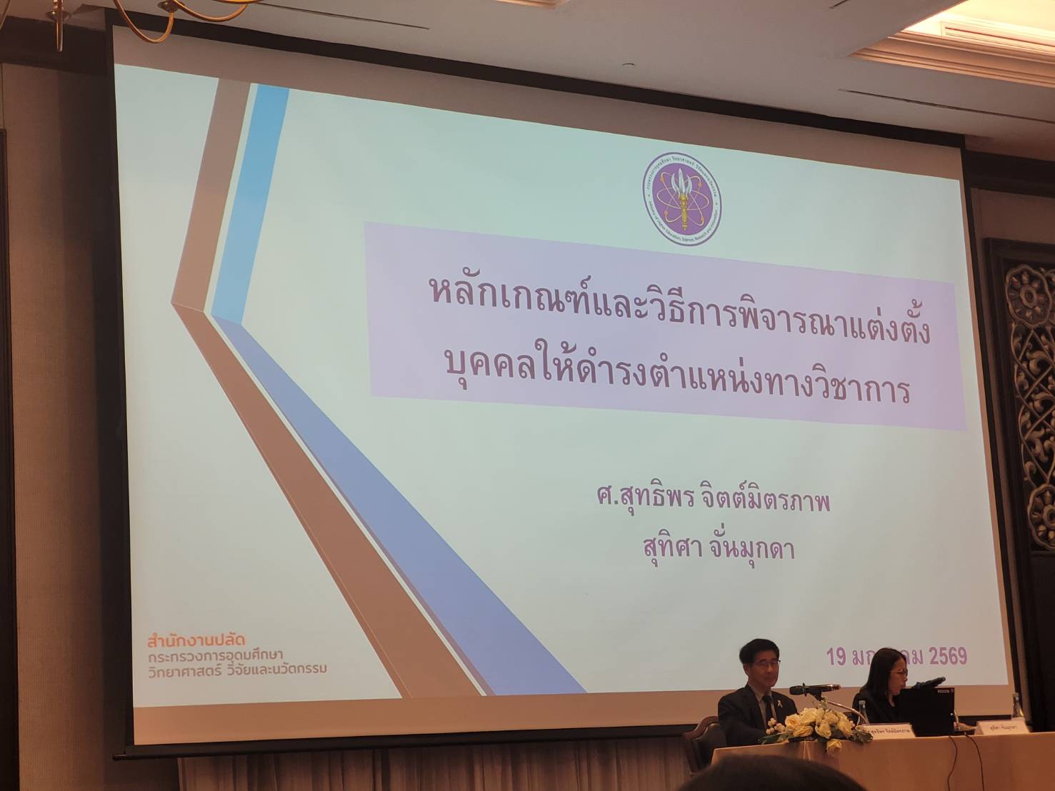 เมื่อวันที่ 19 มกราคม 2569 กระทรวงการอุดมศึกษาฯ จัดการประชุมสัมมนาเพื่อซักซ้อมความเข้าใจเกี่ยวกับหลักเกณฑ์และวิธีการพิจารณาแต่งตั้งบุคคลให้ดำรงตำแหน่งทางวิชาการ รุ่นที่ 3 ณ ห้องแกรนด์บอลรูม ชั้น 3 โรงแรมเซ็นจูรี่ พาร์ค กรุงเทพฯ