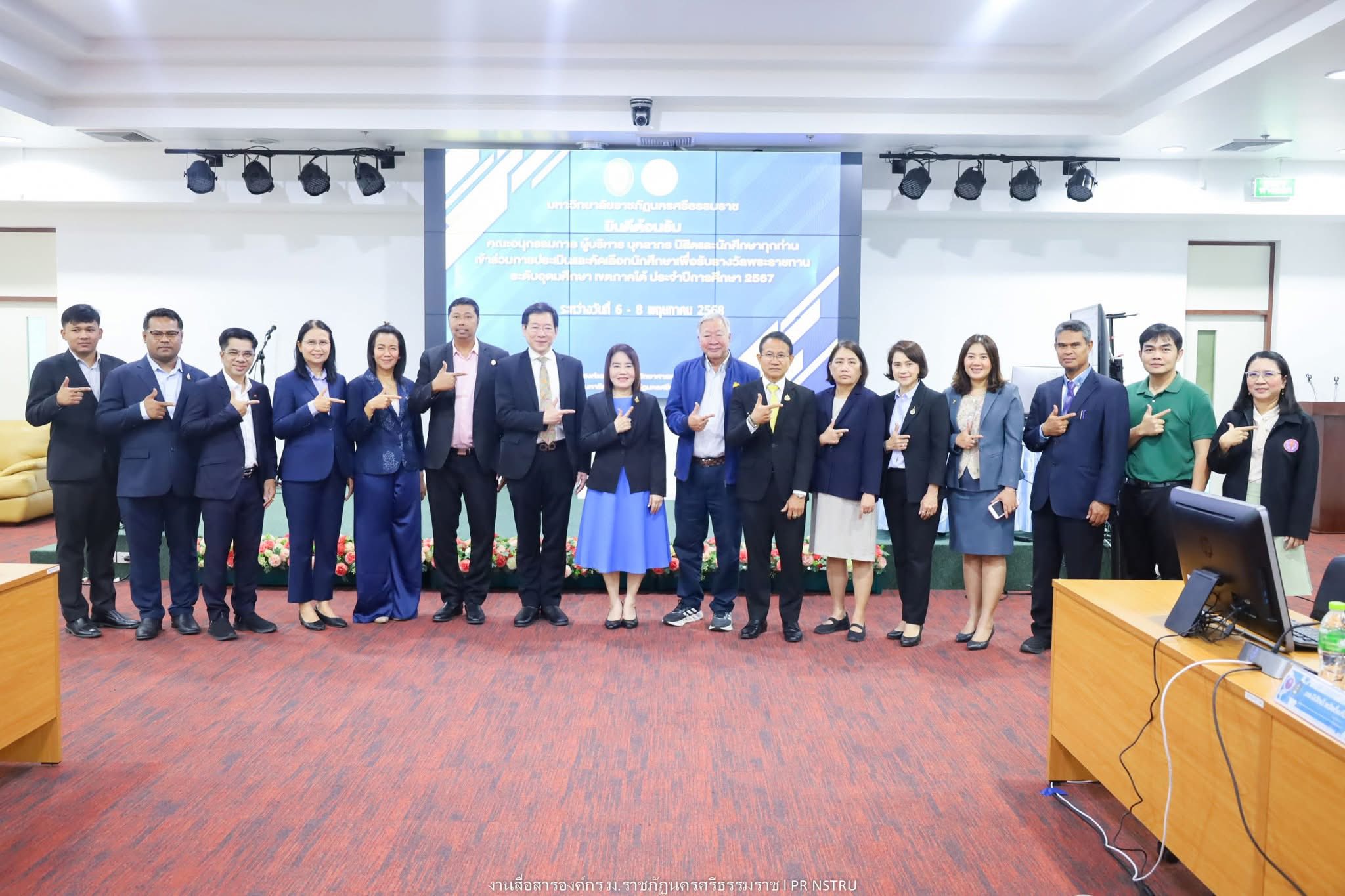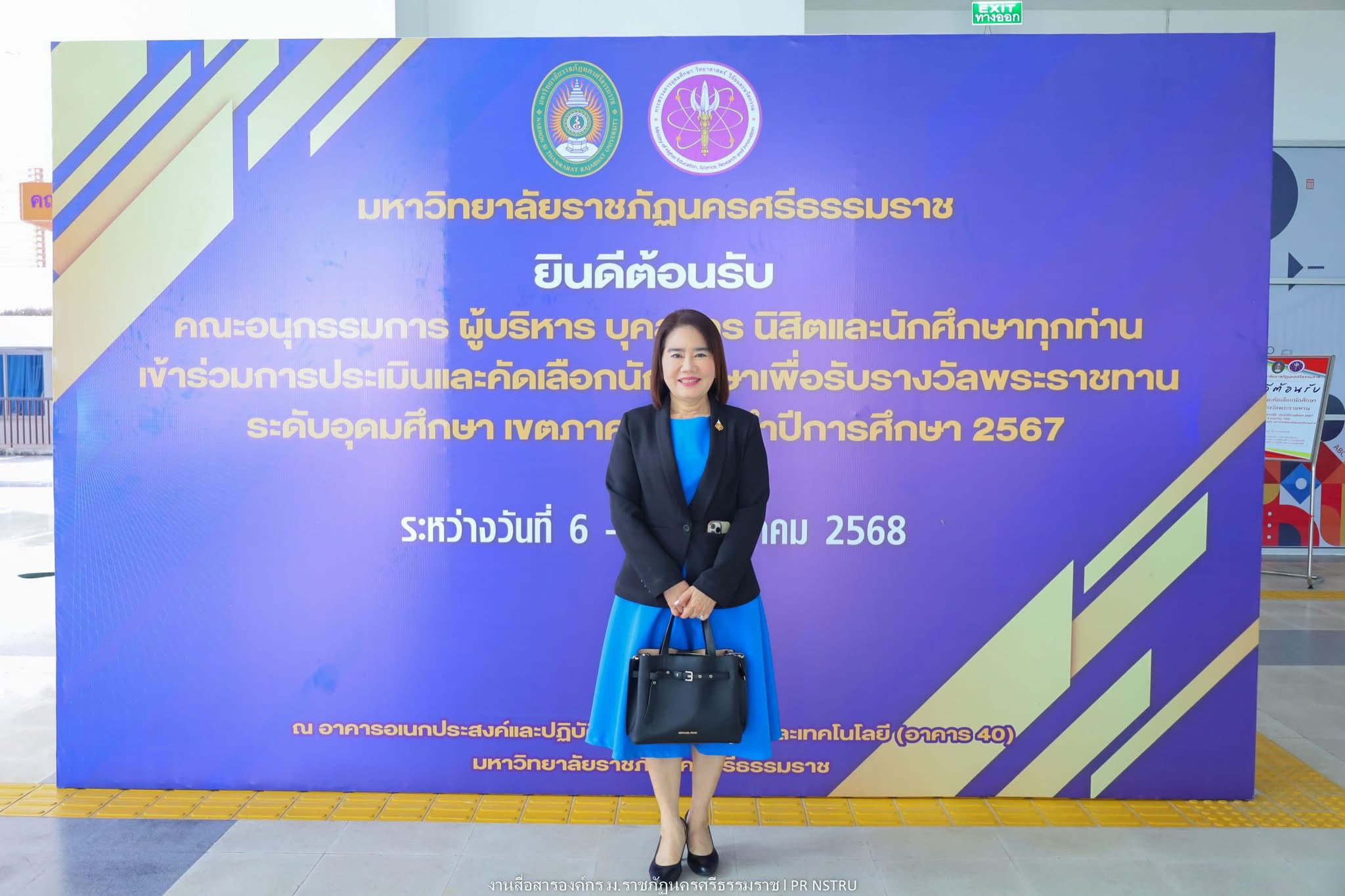 มหาวิทยาลัยราชภัฏนครศรีธรรมราชได้รับมอบหมายจากสำนักงานปลัดกระทรวงการอุดมศึกษา วิทยาศาสตร์ วิจัยและนวัตกรรม เป็นเจ้าภาพสถานที่จัดการประเมินและคัดเลือกนักศึกษาเพื่อรับรางวัลพระราชทาน ระดับอุดมศึกษา เขตภาคใต้ ประจำปีการศึกษา 2567 ระหว่างวันที่ 6 - 8 พฤษภาคม 2568 ณ อาคารอเนกประสงค์และปฏิบัติการวิทยาศาสตร์และเทคโนโลยี (อาคาร 40) มหาวิทยาลัยราชภัฏนครศรีธรรมราช โดยมี ผู้ช่วยศาสตราจารย์ ดร.วิชิต สุขทร รองอธิการบดี ฝ่ายวิชาการ กิจการนักศึกษา และงานบุคคล และคณะให้การต้อนรับคณะกรรมการและผู้รับการประเมินและคัดเลือกนักศึกษาเพื่อรับรางวัลพระราชทาน